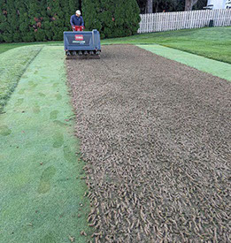 In Fall, recovery is crucial - aeration, fertilization and topdressing to help drive roots into the soil, as well as this is a great time to add seed into weaker areas to promote a more full and healthy stand of turf